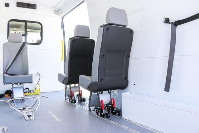 - Flexible seating: AutoFloor systems make it easy to move or remove seats depending on your needs that day. You might transport a few patients in the morning and stretchers later in the afternoon.